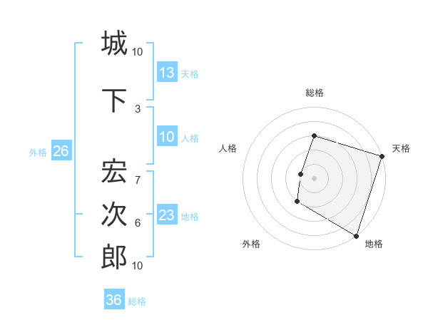 城下 宏次郎さんを姓名の画数から五運を鑑定