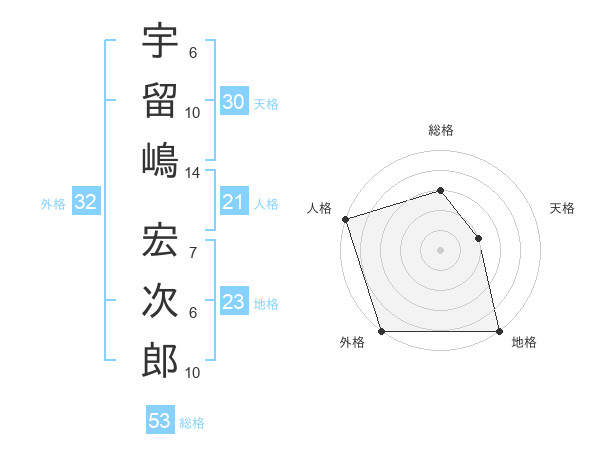 宇留嶋 宏次郎さんを姓名の画数から五運を鑑定