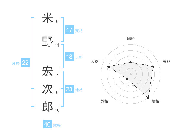 米野 宏次郎さんを姓名の画数から五運を鑑定