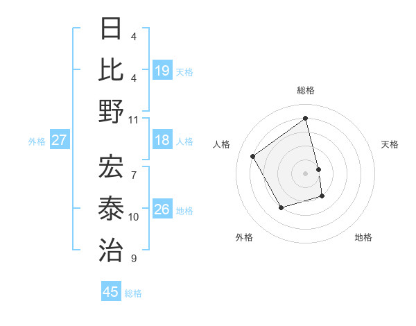 日比野 宏泰治さんを姓名の画数から五運を鑑定