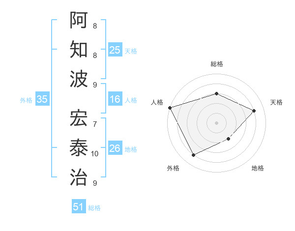 阿知波 宏泰治さんを姓名の画数から五運を鑑定