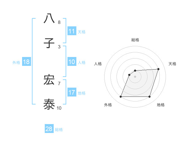 八子 宏泰さんの天格は11画の4点!