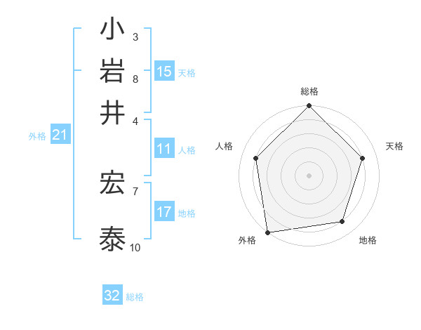 小岩井 宏泰さんの総格は32画の5点!