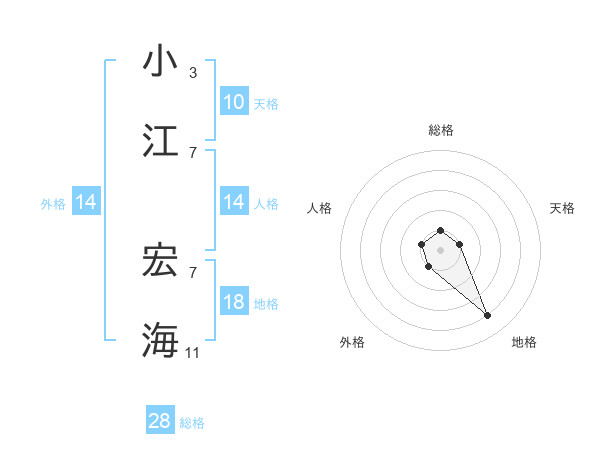 小江 宏海さんの総格は28画の1点!