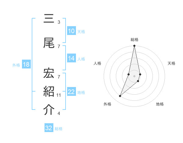 三尾 宏紹介さんの総格は32画の5点!