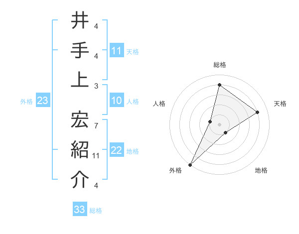 井手上 宏紹介さんの総格は33画の4点!