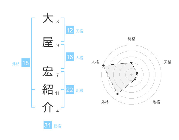 大屋 宏紹介さんを姓名の画数から五運を鑑定