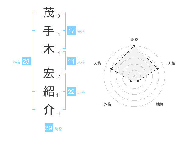 茂手木 宏紹介さんを姓名の画数から五運を鑑定