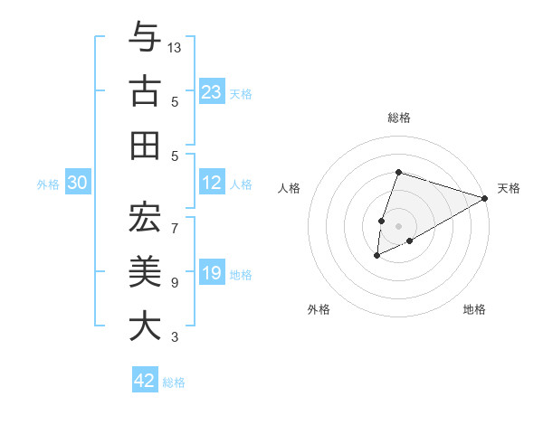 与古田 宏美大さんを姓名の画数から五運を鑑定