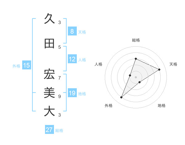 久田 宏美大さんを姓名の画数から五運を鑑定