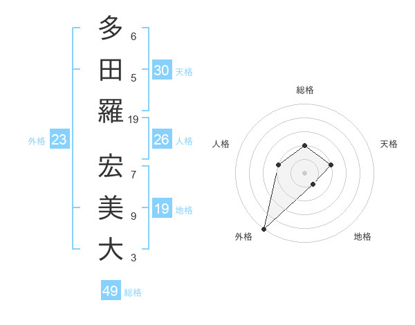 多田羅 宏美大さんの総格は49画の2点!