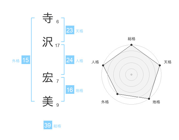 寺沢 宏美さんの総格は39画の5点!