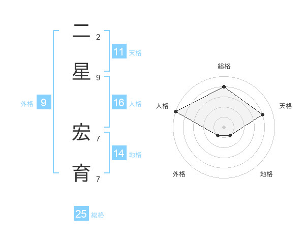 二星 宏育さんの総格は25画の4点!