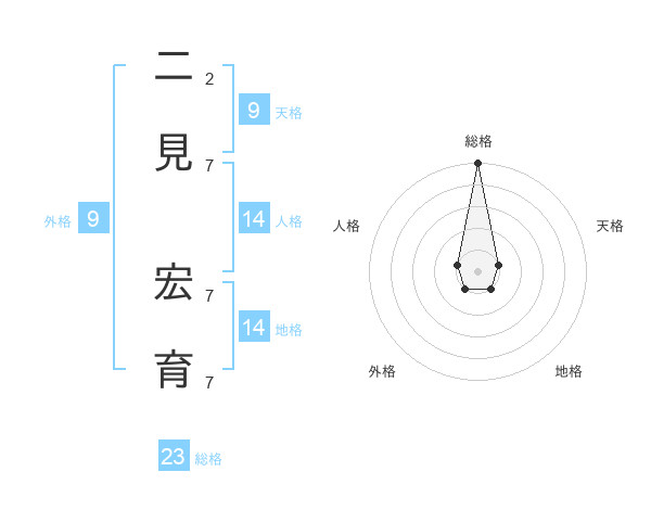 二見 宏育さんの総格は23画の5点!
