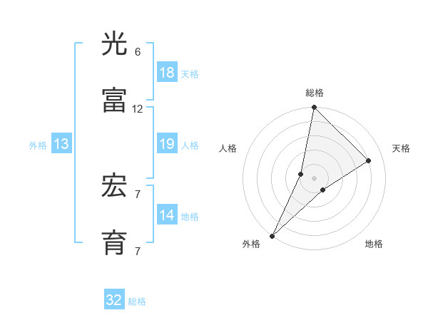 光富 宏育さんの総格は32画の5点!