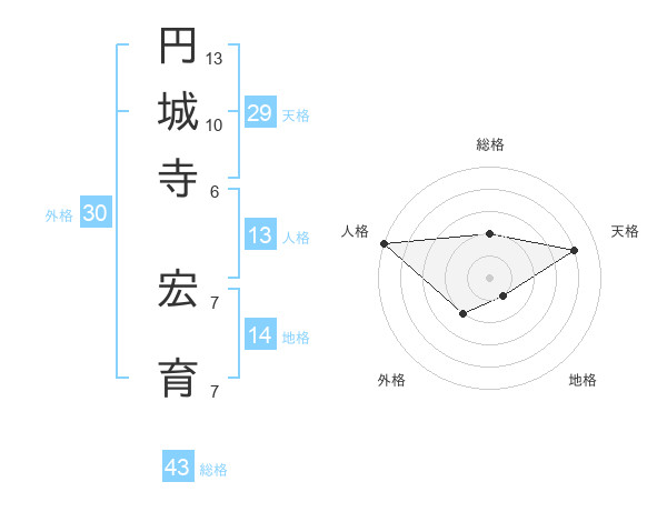 円城寺 宏育さんの総格は43画の2点!