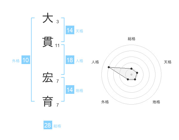 大貫 宏育さんを姓名の画数から五運を鑑定