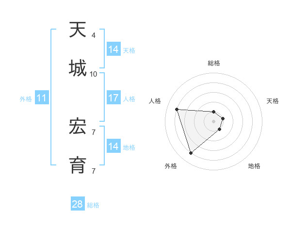 天城 宏育さんの天格は14画の1点!