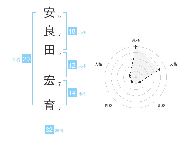 安良田 宏育さんの総格は32画の5点!
