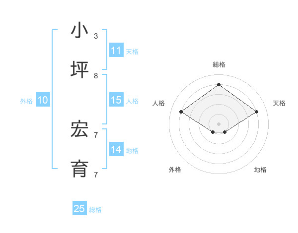 小坪 宏育さんの天格は11画の4点!