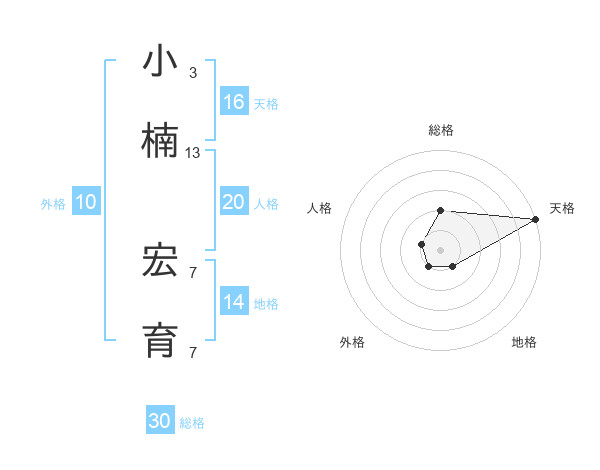 小楠 宏育さんを姓名の画数から五運を鑑定