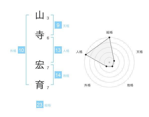 山寺 宏育さんの総格は23画の5点!