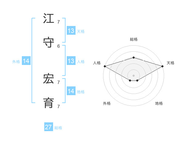 江守 宏育さんの天格は13画の5点!