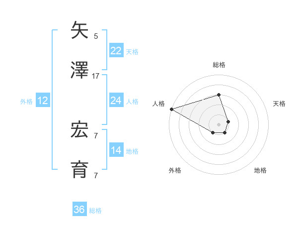矢澤 宏育さんを姓名の画数から五運を鑑定