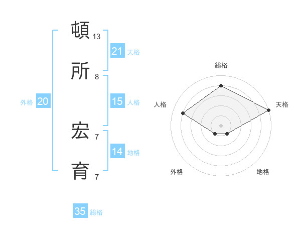 頓所 宏育さんの天格は21画の5点!