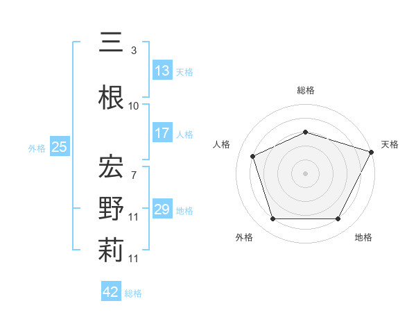 三根 宏野莉さんの総格は42画の3点!