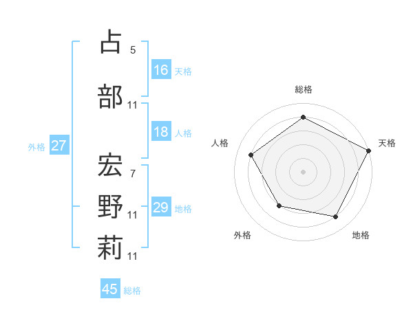 占部 宏野莉さんを姓名の画数から五運を鑑定