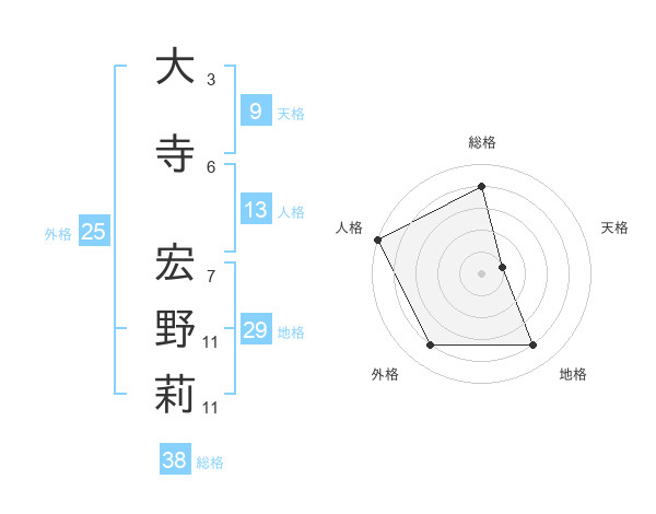 大寺 宏野莉さんの総格は38画の4点!