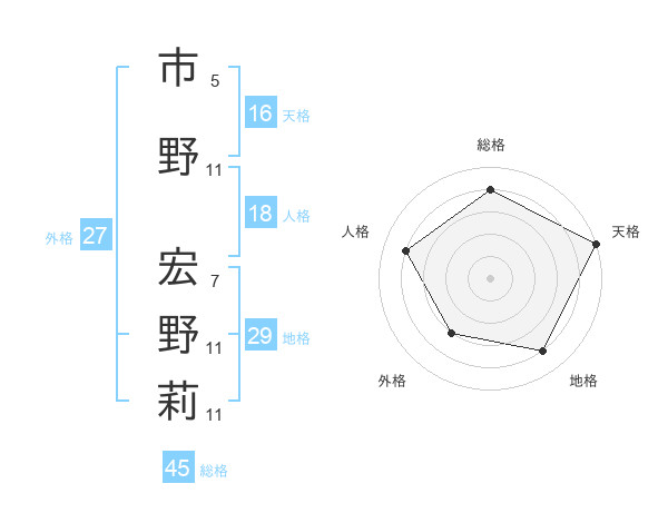 市野 宏野莉さんの天格は16画の5点!