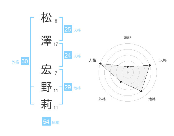 松澤 宏野莉さんを姓名の画数から五運を鑑定