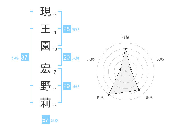 現王園 宏野莉さんを姓名の画数から五運を鑑定