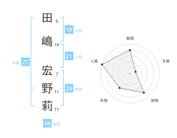 田嶋 宏野莉さんを姓名の画数から五運を鑑定