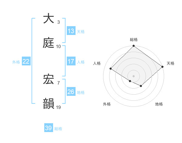 大庭 宏韻さんの外格は22画の1点!