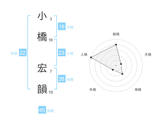 小橋 宏韻さんの外格は22画の1点!