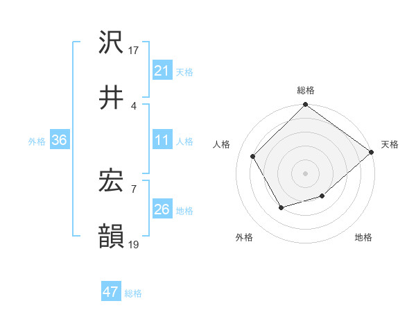 沢井 宏韻さんを姓名の画数から五運を鑑定