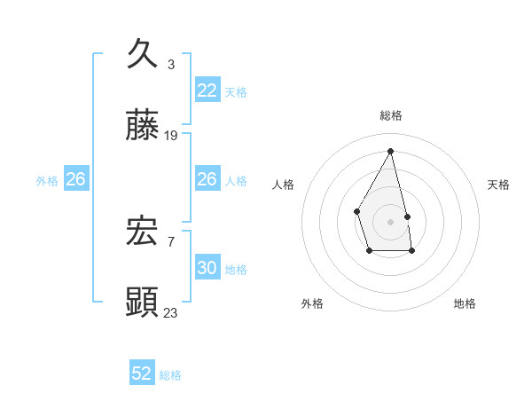 久藤 宏顕さんの総格は52画の4点!