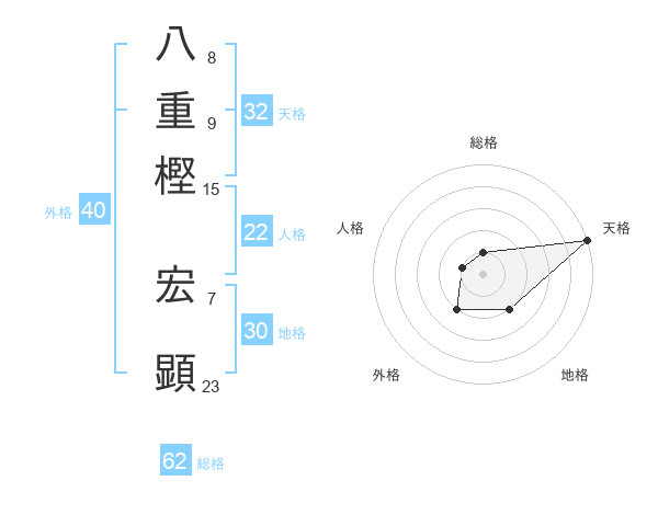 八重樫 宏顕さんを姓名の画数から五運を鑑定