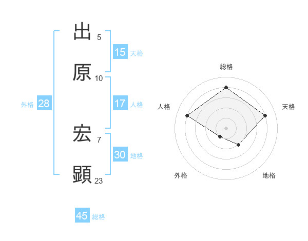 出原 宏顕さんを姓名の画数から五運を鑑定