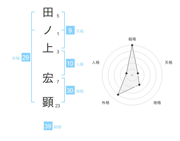 田ノ上 宏顕さんの総格は39画の5点