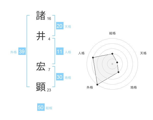 諸井 宏顕さんを姓名の画数から五運を鑑定