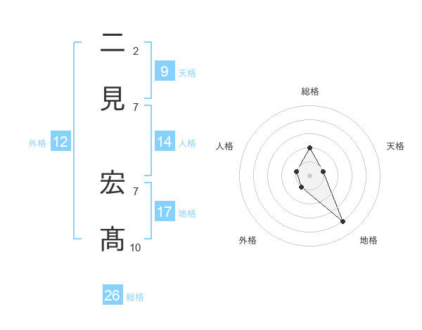 二見 宏髙さんを姓名の画数から五運を鑑定