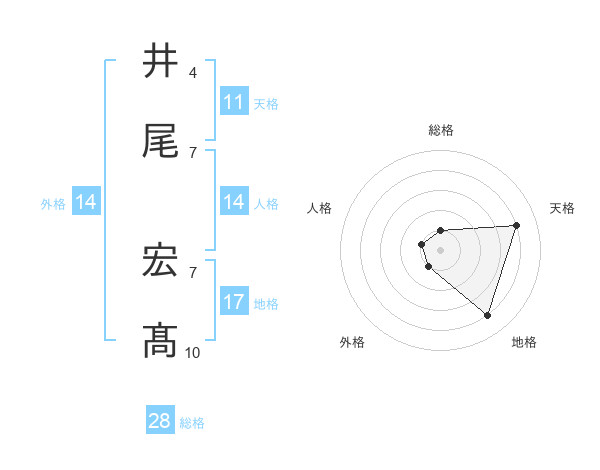 井尾 宏髙さんの総格は28画の1点!