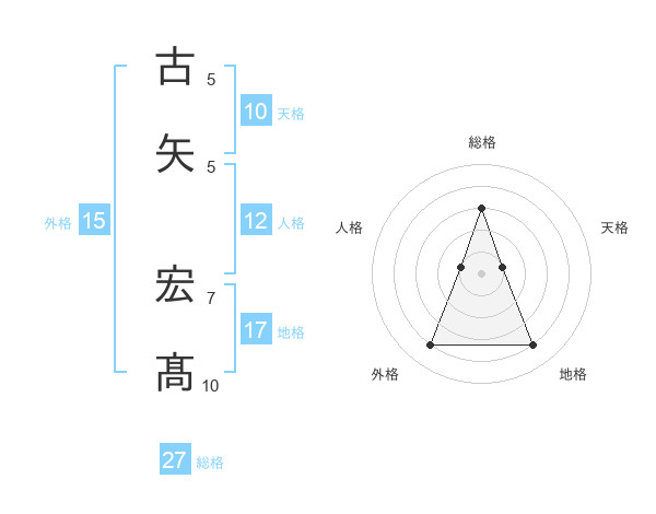 古矢 宏髙さんの総格は27画の3点!