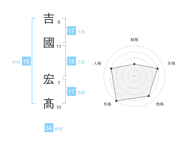 吉國 宏髙さんの天格は17画の4点!