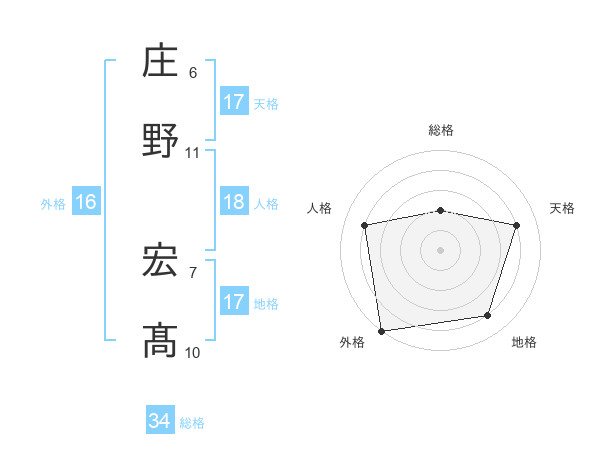 庄野 宏髙さんを姓名の画数から五運を鑑定