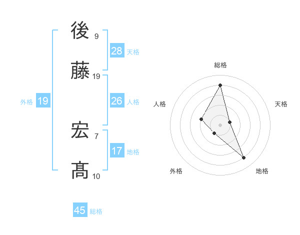 後藤 宏髙さんを姓名の画数から五運を鑑定